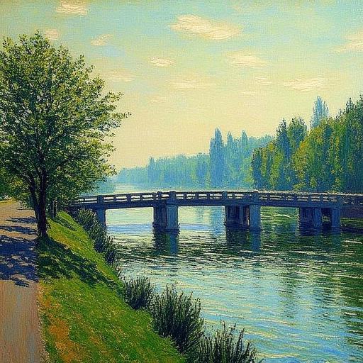 image = pipeline('Impressionism \(Oscar-Claude Monet\), The image is a painting of a landscape with a bridge over a body of water.').images[0]