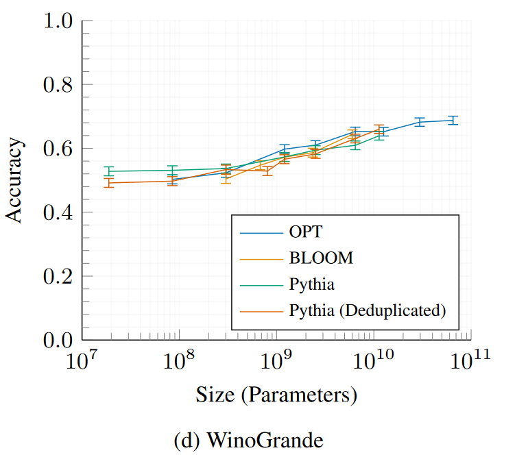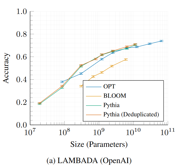 Pythia and Pythia-deduped models compared with OPT and BLOOM.