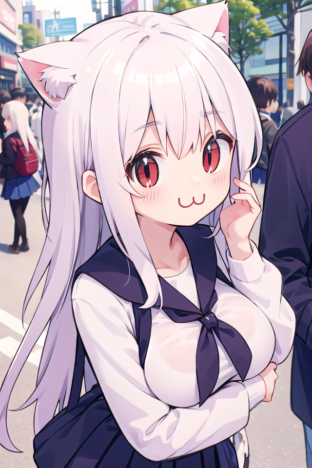 猫の口は、:3やcat mouthのプロンプトのみで出てくるものよりも大きめのものが出現します。