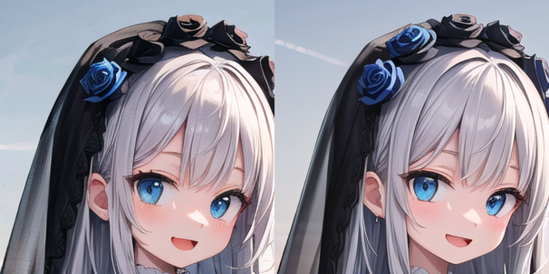 - [ぼかし/背景ぼかしLoRA](https://huggingface.co/JujoHotaru/lora/blob/main/blur/README.md)をマイナス適用することでシャープエフェクトをかけた出力