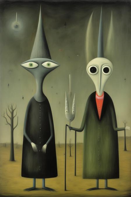 - text: "Victor Brauner Style - fantastic Midlibrary Guardian by Victor Brauner. Acid green hues"