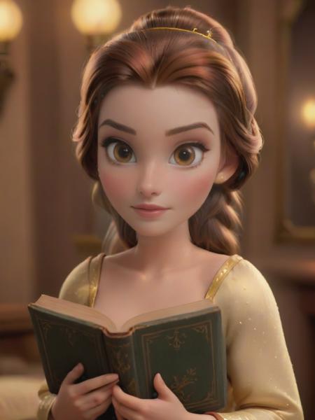 - cinematic film still Princess Belle with book, , . shallow depth of field, vignette, highly detailed, high budget, bokeh, cinemascope, moody, epic, gorgeous, film grain, grainy