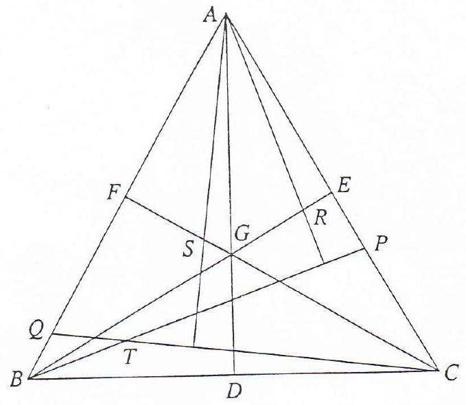 Let $G$ be the centroid of triangle $A B C$, and also the intersection point of $A_{1} B_{2}, A_{2} B_{3}$, and $A_{3} B_{1}$ 。