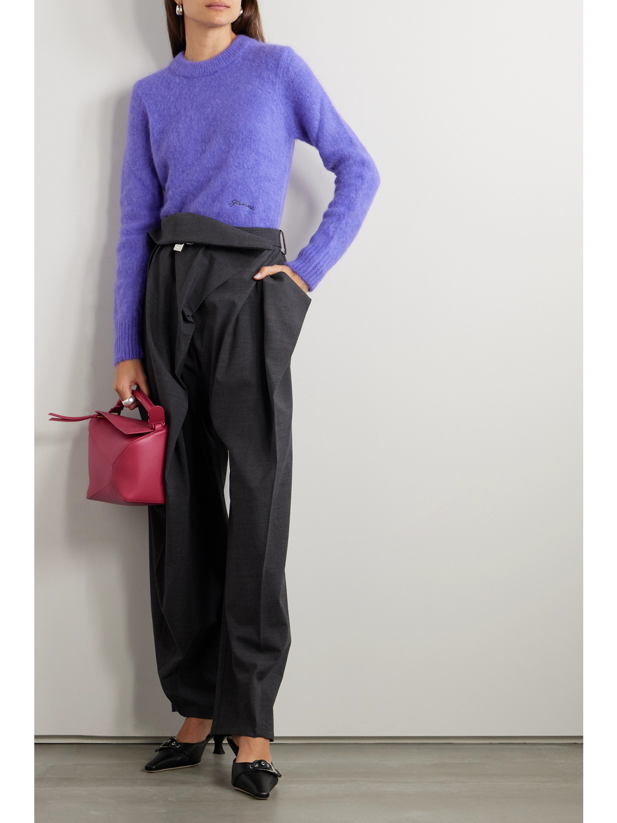 Asymmetric fringed color-block merino wool and silk-blend midi dress
