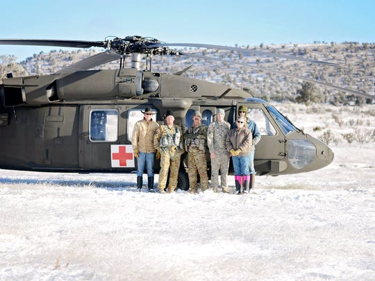 La mujer de uniforme beige se da la mano con un hombre que lleva un