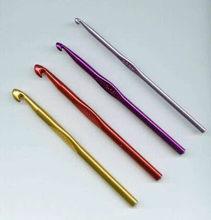 1\. خطاف الكروشيه: يستخدم خطاف ذو طرف صغير مدبب لخيوط الكروشيه. يعتمد حجم الخطاف على سمك الخيط الذي تستخدمه.