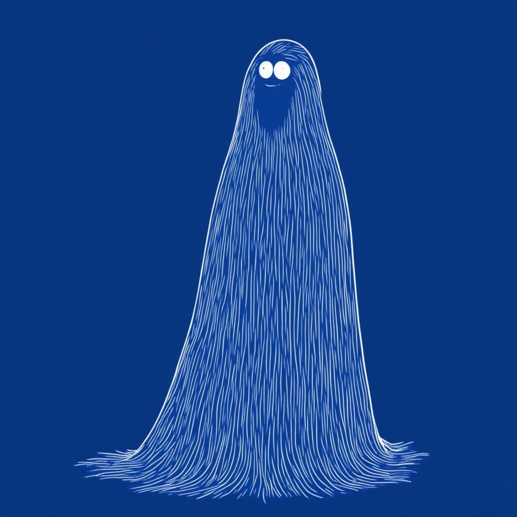 - ghost. deep blue, white lines illustration, in the style of TOK, 2