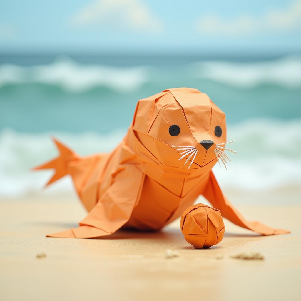 image = pipeline('A seal plays with a ball on the beach, [trigger] style.').images[0]